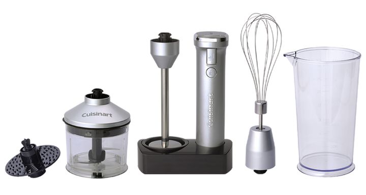 クイジナート コードレス充電式ハンドブレンダー RHB-1070J ¥18,700(編集部調べ)/コンエアージャパン <ブレンダー>幅60×奥行65×高375mm<ウィスク>幅60×奥行65×高420mm<チョッパー>幅120×奥行120×高315mm<おろしディスク>幅120×奥行120×高315mm<充電スタンド>幅150×奥行90×高38mm