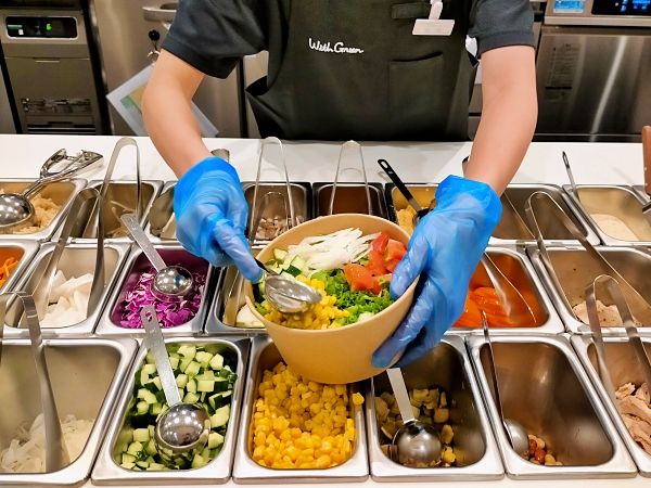テイクアウトなら、目の前で容器に盛り付けられるサラダを見るのも楽しいですよ。