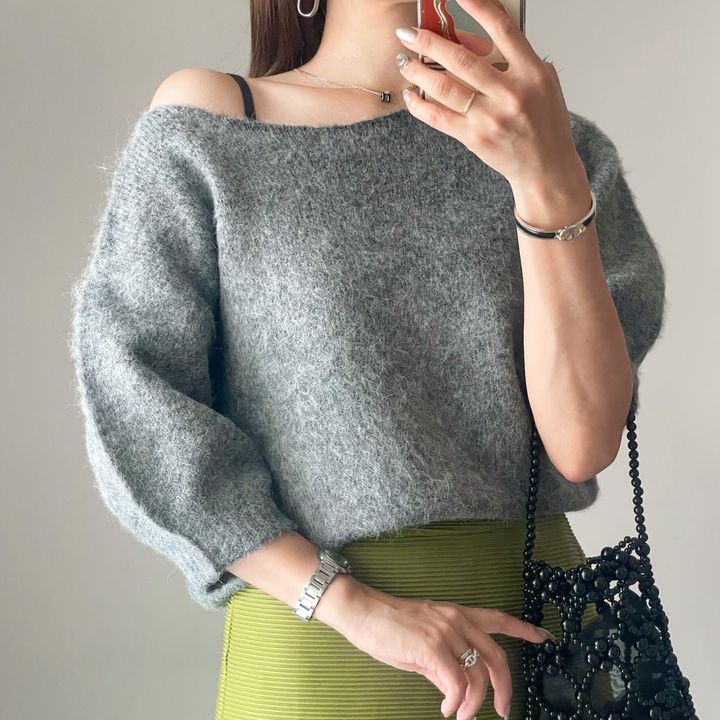 3. ワンショルで大人キレイ♡【しまむら】「ボートネックニット」おすすめコーデ