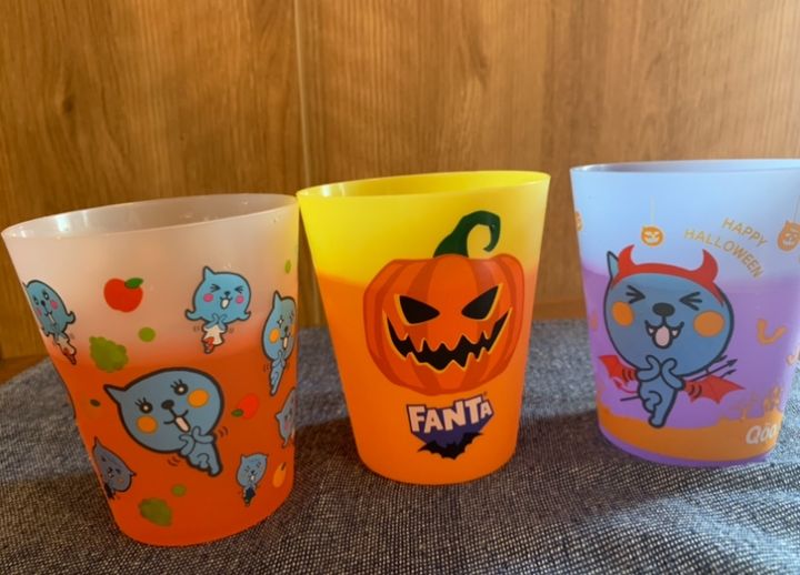 カップにはQooのお馴染みのキャラが書いてあったり、「FANTA」の文字が入っているものも