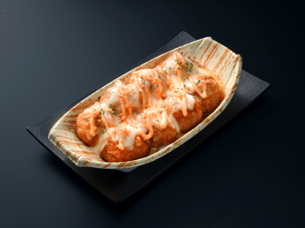 昨年5月に発売した「明太チーズのとろ~りたこ焼き」に比べ、チーズの量を400%も増量したチーズの海にたこ焼きが浮いているような一品。
