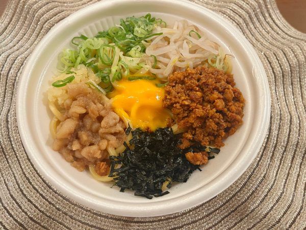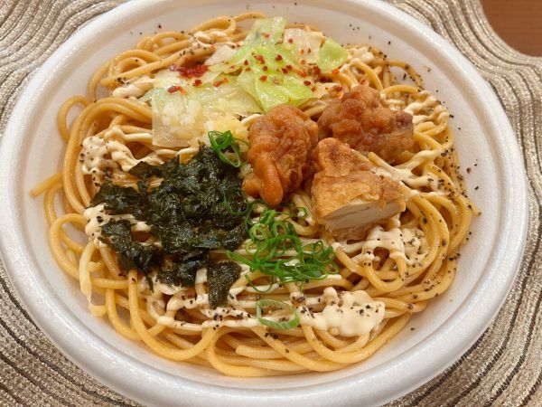 パスタがもちっとしていて、ちょっと焼きそばのような感じもしました。パスタに鶏のから揚げがのっているのは初めてだったので、見た目のインパクトが大でした。(笑)