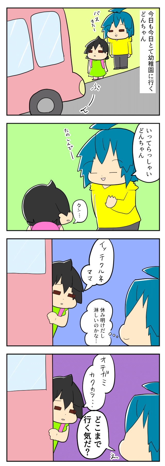 別れ際にバスから「お手紙書くから」と寂しそうに言う娘。とんでもなく遠くに行きそうな雰囲気ですが幼稚園バスです