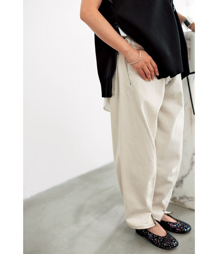 ハイウエストとⅠラインのW効果でスタイル美人。