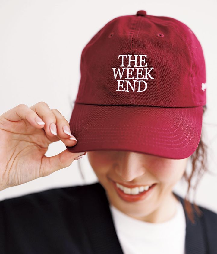 ゆる×ゆるの着こなしには、目線を上に誘うキャップがマスト。今季トレンドのボルドーを効かせて女らしいエッセンスをイン。