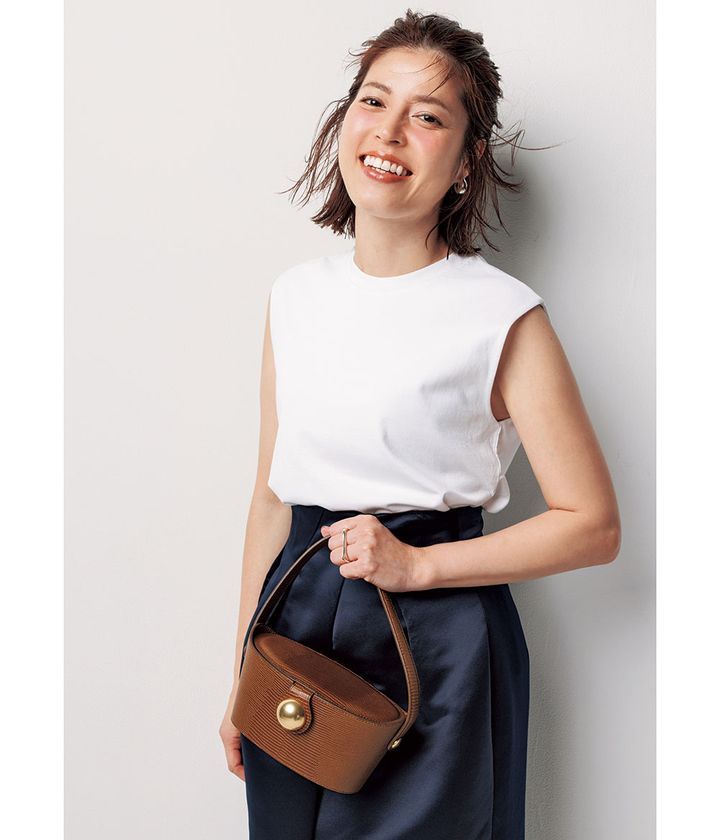 「そろそろ大人も取り入れていいトレンドとして定着しつつある、ブラ型ビスチェ。Tシャツやシャツに重ねることで、上半身にポイントが作れるSサイズの味方。下着見えしないシンプルなデザインを選ぶのも鉄則。」(神田さん)
