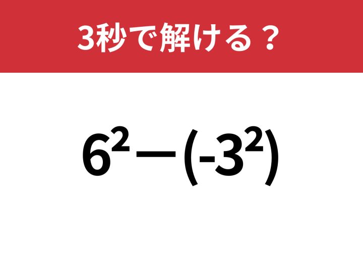 こんなひっかけがあったなんて!「6^2−(-3^2)」3秒で解ける?