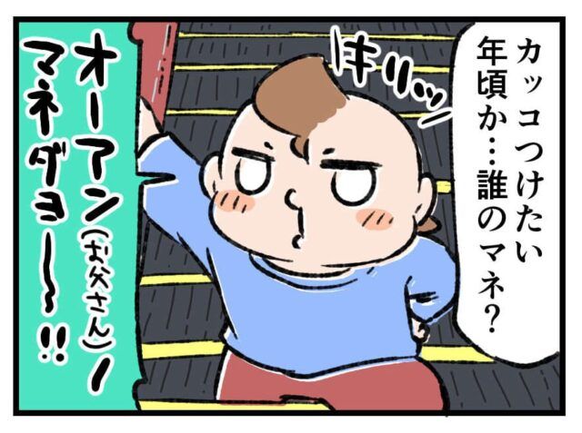 3. エスカレーターでカッコつける息子に「誰のマネ?」と聞いたらまさかの自分で赤面するパパ|左近寺しゅうりの育児漫画