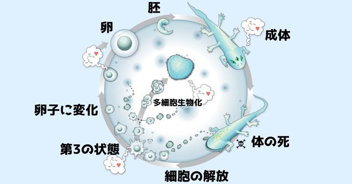 生物としての死や体の解体が起きても、新たな多細胞生命として存在できるという結果は、既存の生死の概念を揺るがす結果と言えるでしょう。