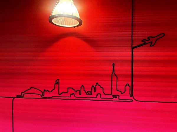 THE NORTH GALLERYまでの道は右側が一面赤い壁になっており、ライトのコードを利用し世界を表現しています!