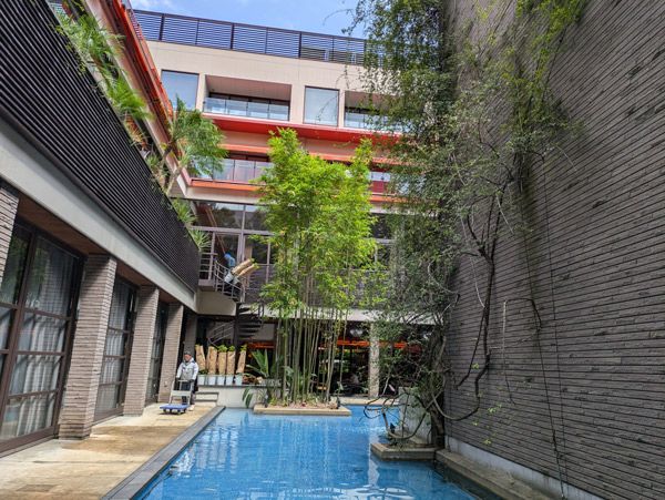WITH THE STYLE FUKUOKAは、博多駅から徒歩5分にある「非日常へと誘う、アーバンリゾートホテル」がコンセプトのラグジュアリーホテルです。トロピカルな植物に囲まれており、最初見たときには「本当にここが博多にあるホテルなのか?!」と、疑うくらい自然豊かでリゾート感満載の空間でした!