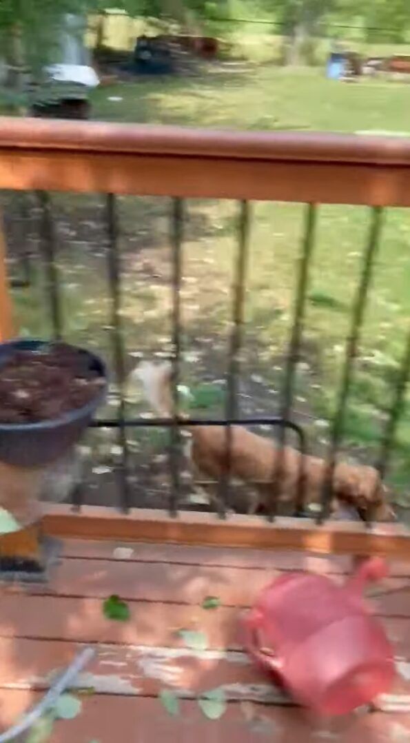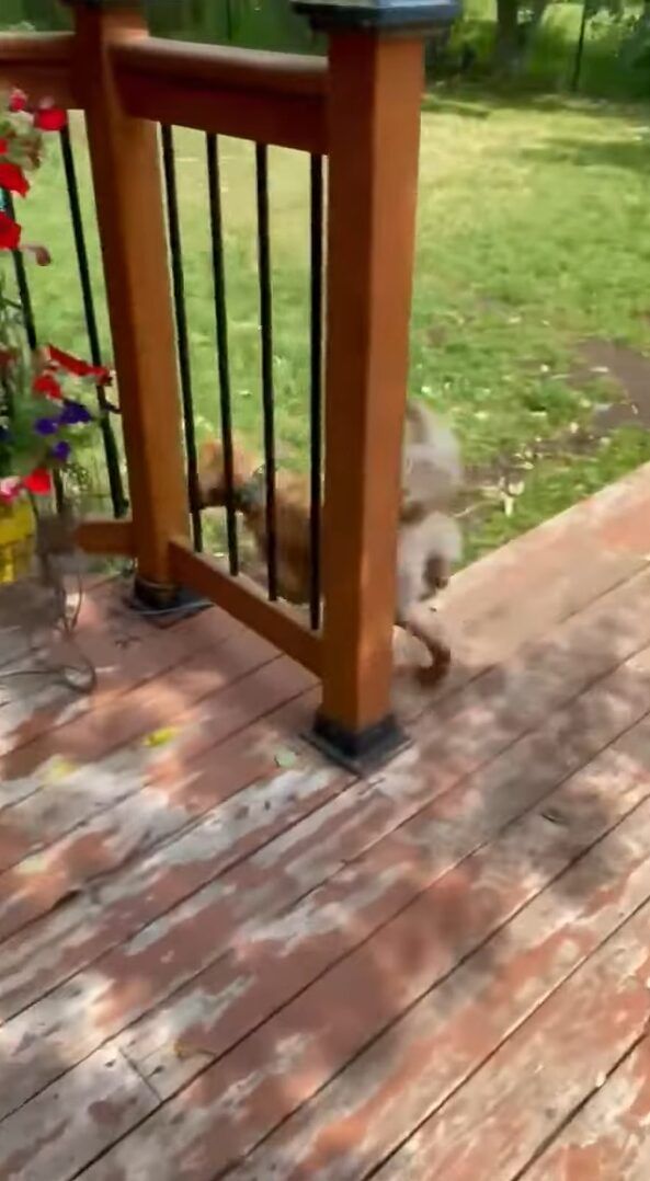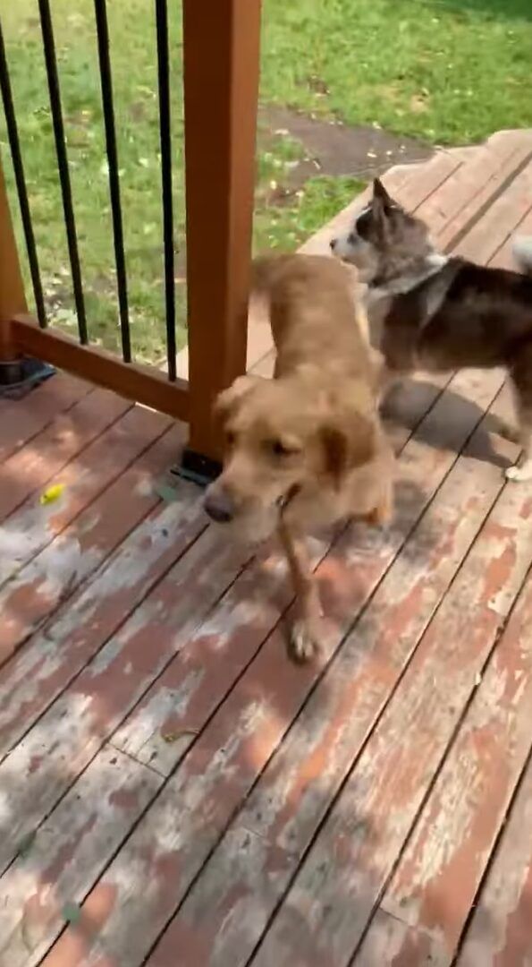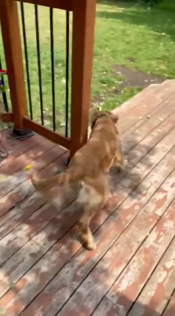 動画が撮影されたのは、カナダのとあるお宅。 ウッドデッキで遊ぶ愛犬の様子がとらえられています。