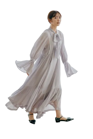 やわらかい素材のワンピが主役のコーデ。小物はシンプルにまとめて大人っぽく仕上げて!首元のリボンが顔まわりを華やかにしてくれる♡