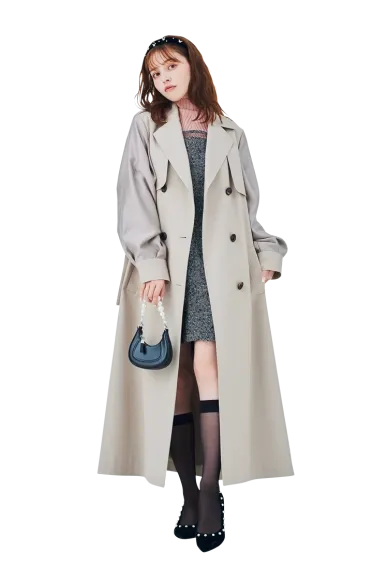 トレンチコートを使ったコーデ。ミニワンピ×ロングコートで美脚見え♡ 靴下はシースルーアイテムをチョイスして抜け感を!