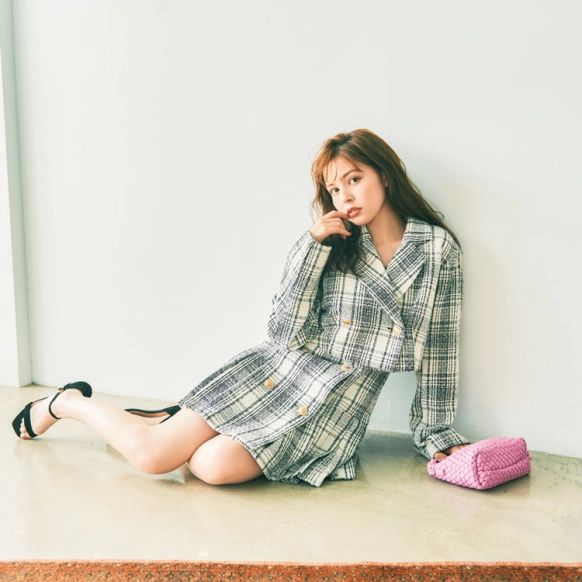 ガーリーに仕上がるツイードセットアップが主役のコーデ。モノトーン配色で上品さをプラス!差し色にピンクバッグをチョイスして♡