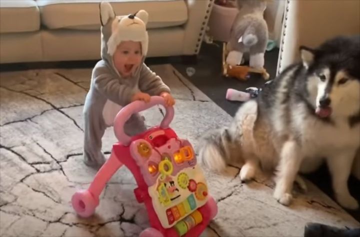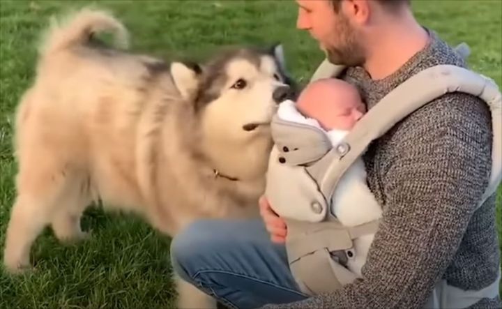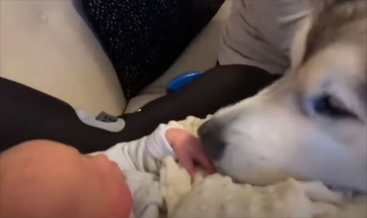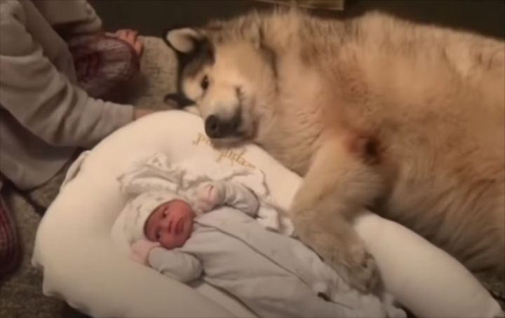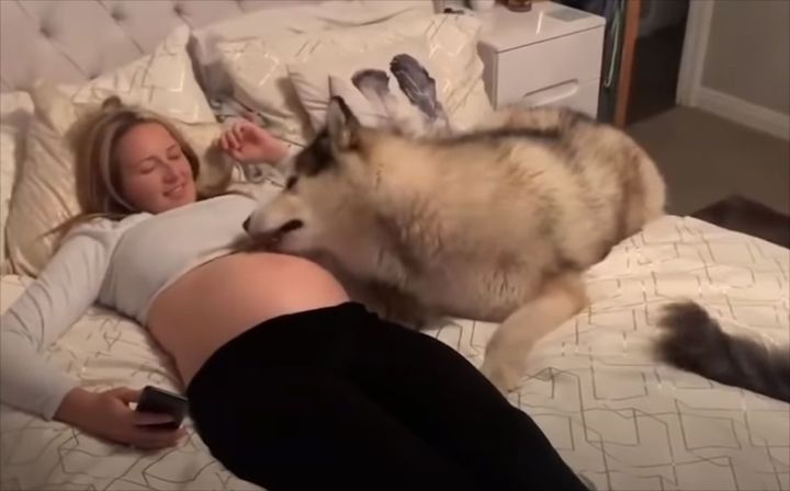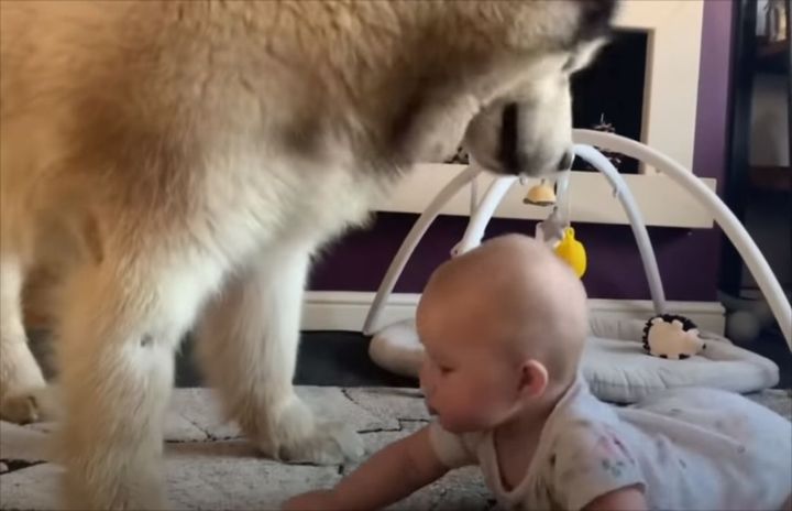 赤ちゃんが生まれる前から、まるで親のように寄り添い楽しみにしているこの家の愛犬。 生まれる前からこうなのですから、もちろん生まれてからもいつも一緒にいます。 そんな、生まれる前から一緒にいたといっても過言でもない赤ちゃんと犬の様子を記録した動画をご紹介します!