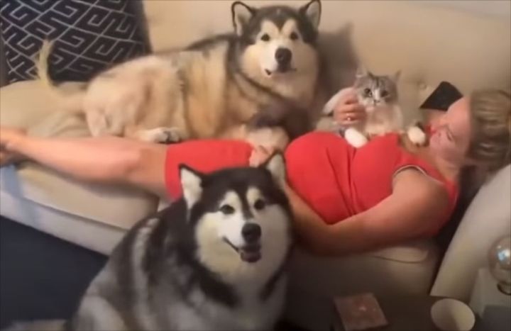 待ちに待っているのはこの子だけではないようです。 一緒に暮らしている他の犬や猫たちも、赤ちゃんの誕生が楽しみで仕方がないようで、飼い主さんのそばにいます。
