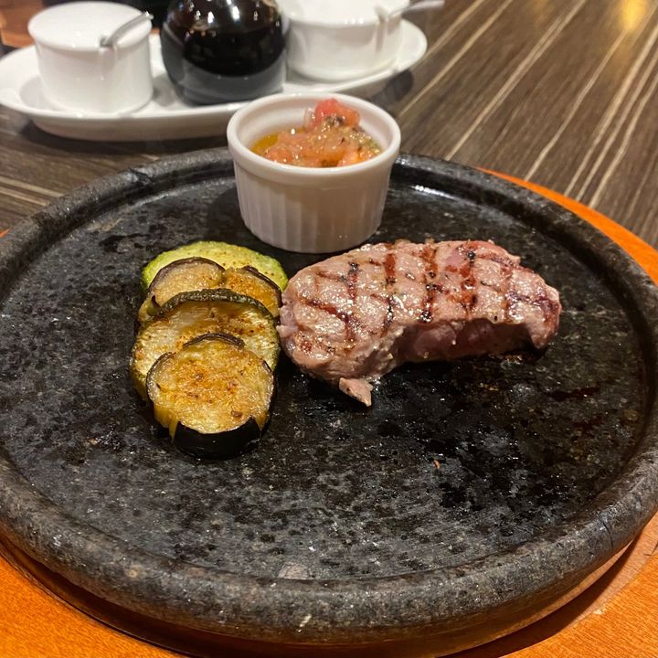 焼きたて熱々のステーキは、噛むごとに肉の旨みを感じられて食べ応え抜群!トマトとオリーブを使ったさっぱりとしたソースも美味しかったです☺️