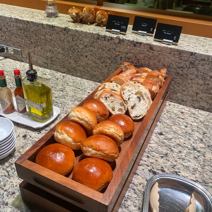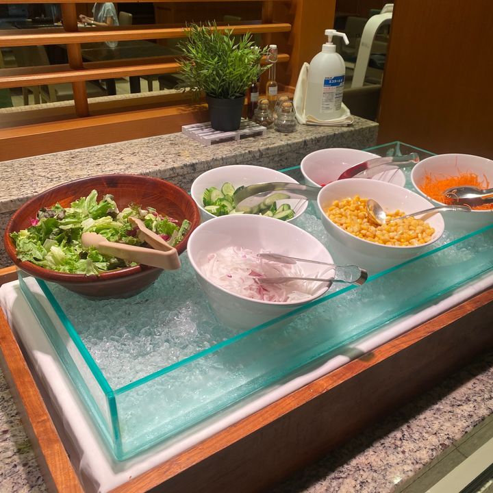 オーダースタイルのブュッフェの他、サラダやパンもセルフで食べ放題となっていましたよ!