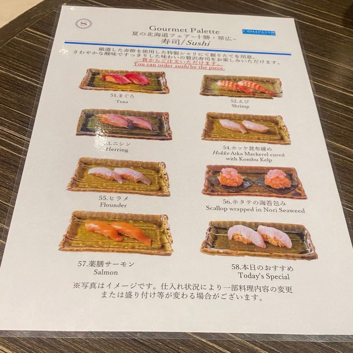 北海道フェア限定のものから、コンパスのシグネチャーメニューまで、美味しそうなグルメがずらりと並んでいます!