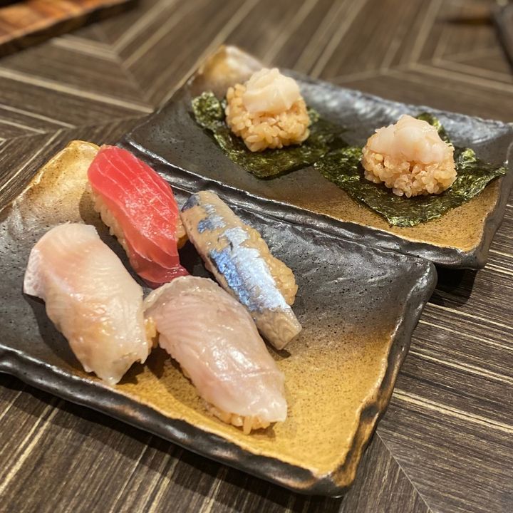 私はまぐろとホッケの昆布締め、ホタテの海苔包みをいただきました。