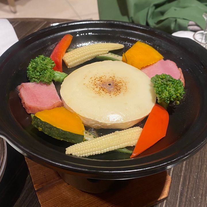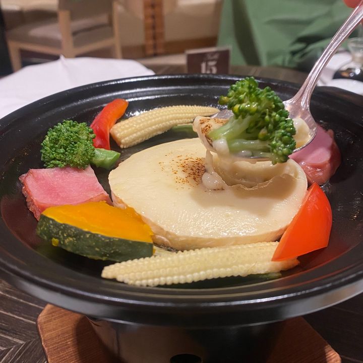 濃厚な味わいのチーズに、素材本来の甘味を感じる野菜やベーコンが相性抜群!ついついワインが進みました🍷