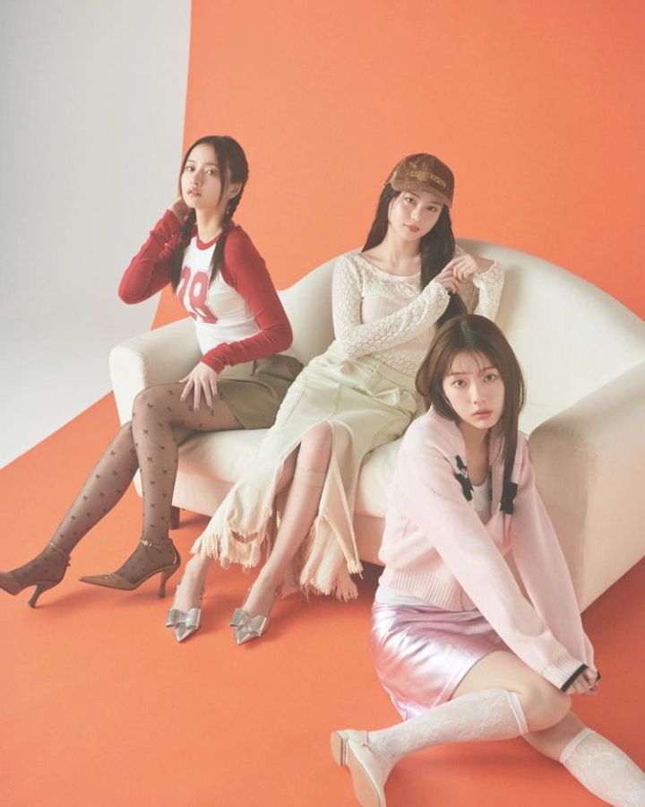 〈左〉ラグランTシャツ 9,000円/seooocookie チェックミニスカート 18,946円/INSTANTFUNK(MUSINSA GLOBAL STORE) タイツ 1,100円/靴下屋(Tabio) パンプス 9,790円/EMODA ルミネエスト新宿店 〈中〉デニムスカート 57,089円/2000ARCHIVES(MUSINSA GLOBAL STORE) レーストップス 11,547円/マーガリンフィンガーズ(スクリーンショット) キャップ 11,550円/CA4LA ハイソックス 1,210円/靴下屋(Tabio) ミュール 17,900円/チャールズ&キース(チャールズ&キース ジャパン)〈右〉ピンクジップニット 12,880円、白ストーンタンクトップ 7,980円/ともにépine ピンクミニスカート 13,900円/デシグアル(デシグアル ストア 銀座中央通店) ハイソックス 1,100円/靴下屋(Tabio) フラットシューズ 8,900円/チャールズ&キース(チャールズ&キース ジャパン)
