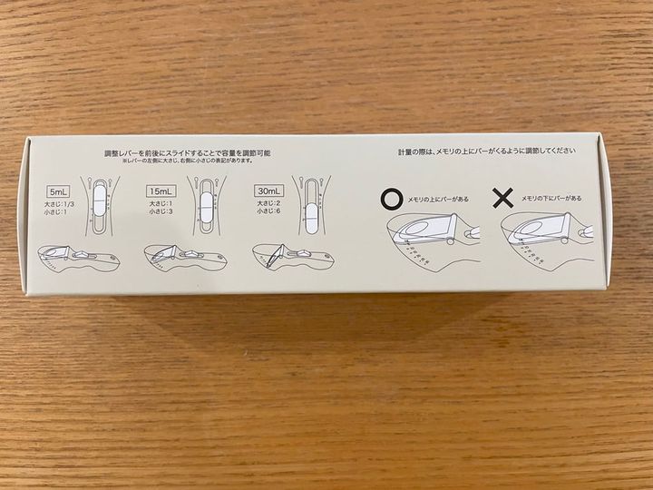 横から見るとmlの表記があるので、ml単位でも計量できます。