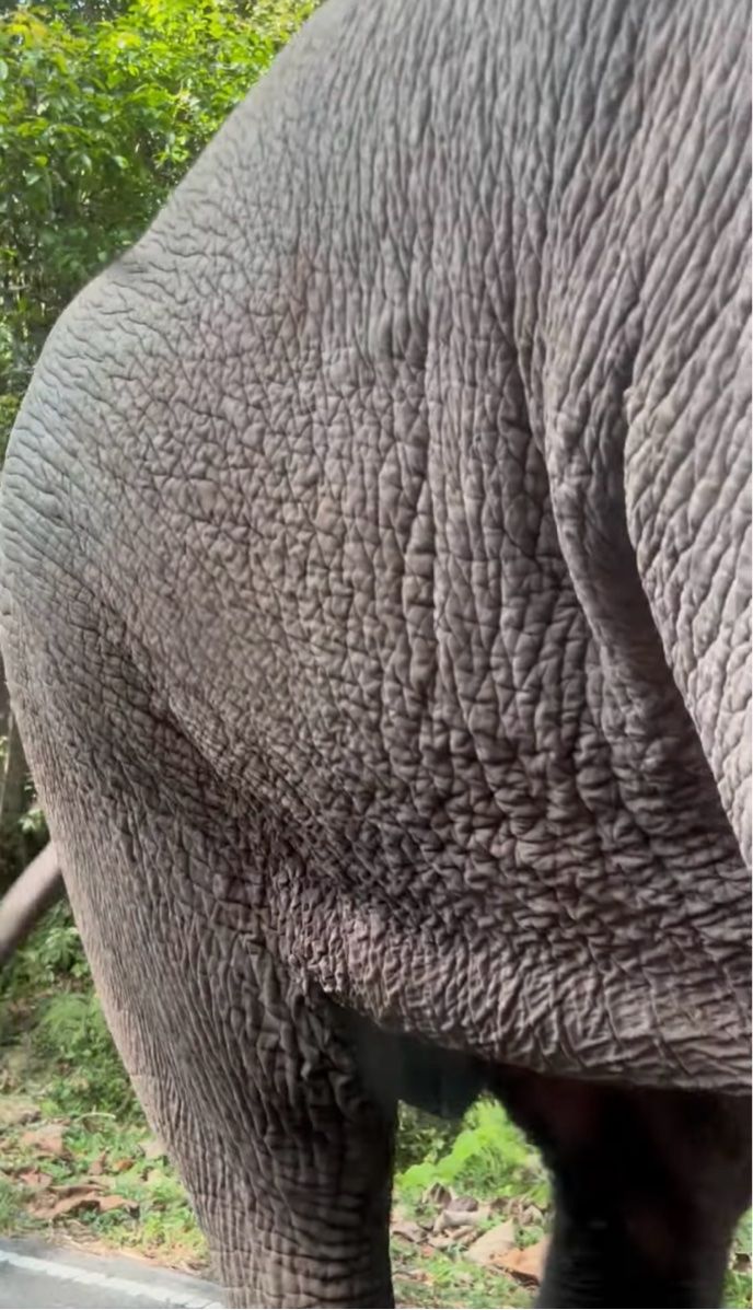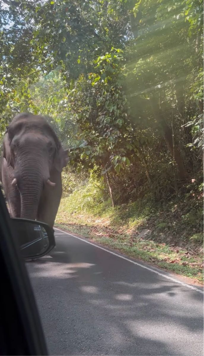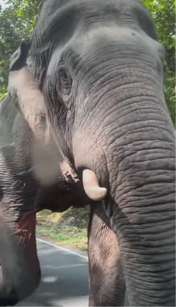 タイの路上で撮影者さんたちのトラックとすれ違うゾウ。