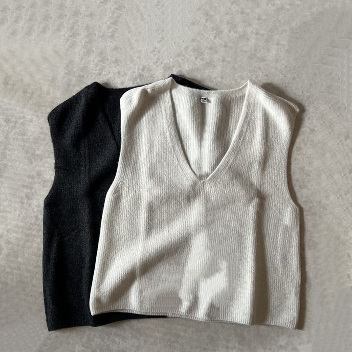 ユニクロでは毎年発売されているスフレヤーンシリーズですが、ベストが出たのは今回初なのでは……? 秋前にゲットしておくと、一足先にトレンドを押さえられてオススメです♡