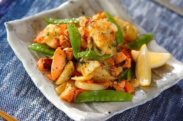 鮭の塩気とジャガイモはとってもいい相性です!素材の持ち味を生かした炒め物は、いつ食べても飽きない味わいですね。秋鮭はあっさりとした味わいなのでバターでコクをプラス。