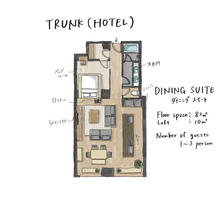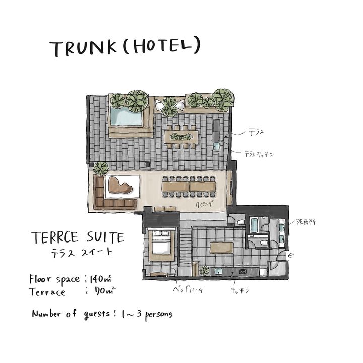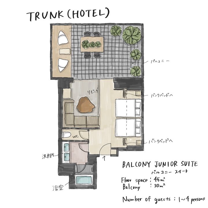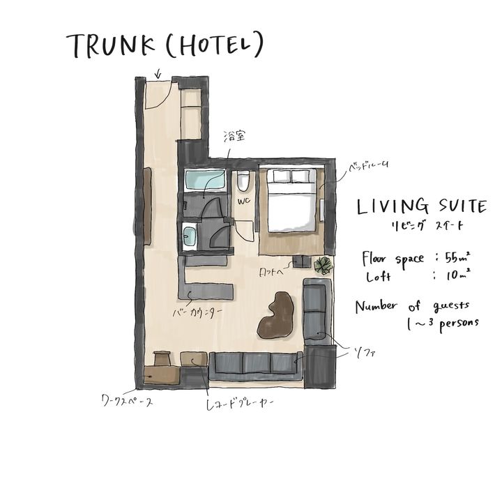 今回は、東京渋谷にある「TRUNK(HOTEL) CATSTREET」を間取りイラストでご紹介します。