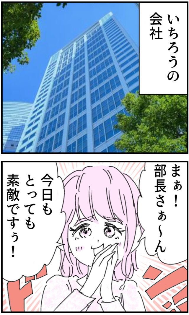 いちろうさんの会社でのこと。「まぁ!部長さぁ~ん!今日もとっても素敵ですぅ!」大袈裟に部長を褒めちぎる白石さんの姿がありました。