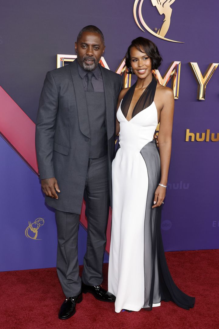 白と黒であでやかに決めたエルバ夫妻。イドリスは『ハイジャック』での主演でノミネートされました。