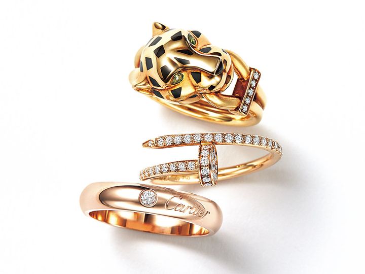 「パンテール ドゥ カルティエ」に「ジュスト アン クル」、どちらもパンチの効いたデザインは重ねることで意外にもお互いが馴染んで、それが身につける人の唯一無二の個性となってくれます。「パンテール ドゥ カルティエ」リングは熟練の職人の手によって仕上げて、優しげな顔、シャープな顔など、それぞれの時代によって異なるのも魅力。