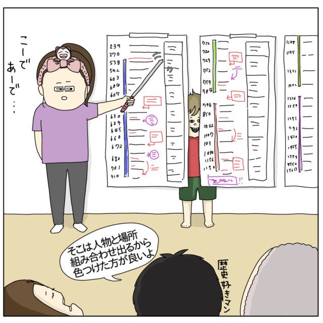 苦手な歴史は時代の流れを把握するために自分で年表を作り、それを家族に説明しながら時代を追う。ということをやってみた。