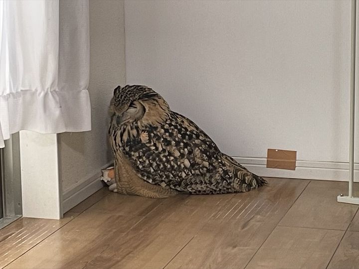掃除中の飼い主さんが目撃したベンガルワシミミズクの姿が話題となっています。 部屋の端でどうやら寝ているところだったようですが・・・。