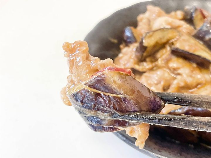 3. 【無限なす】旬の豊満ボディに細かな切り込み入れるのがミソ!とろ~り味シミ茄子に柔らか豚肉でコク深!