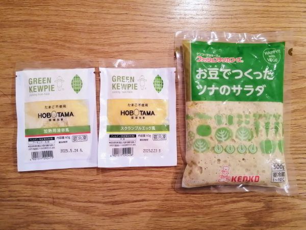 ケンコーマヨネーズの「お豆でつくったツナのサラダ」(778円)は、一般向けにも販売されていて、見た目も味もいつも食べているツナマヨでびっくり!ほんのりお豆の甘さがあって食べやすいです。豆類に含まれる植物性タンパク質は健康面でも注目されていて、プラントベースフードは環境だけでなく、体にもやさしい食品なのです。