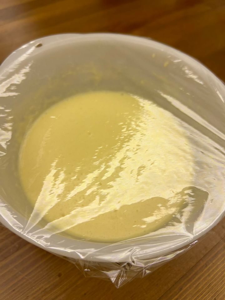 ホットケーキを作る手順に1つプラス!温めたバターを適量投入します。