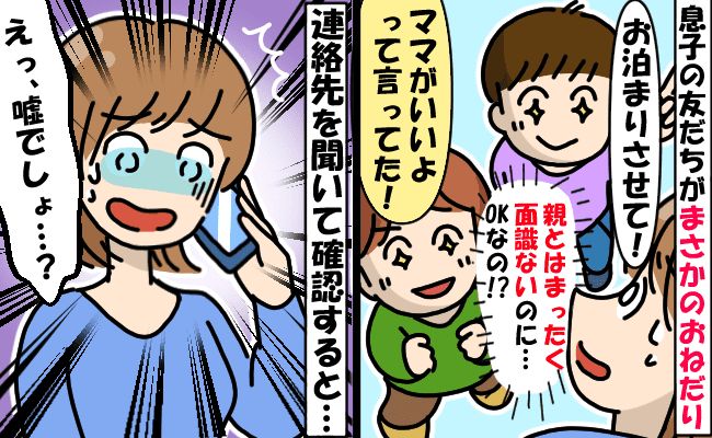週末のお休みを使って10歳の息子のお友だちがわが家へお泊まりに来たいと言い出します。しかし、私はそのお友だちのご両親とは面識がなく……?