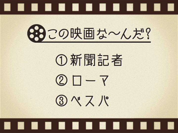 3. 【3つのヒントで映画を当てろ!】「新聞記者・ローマ・ベスパ」連想する名作は何でしょう?