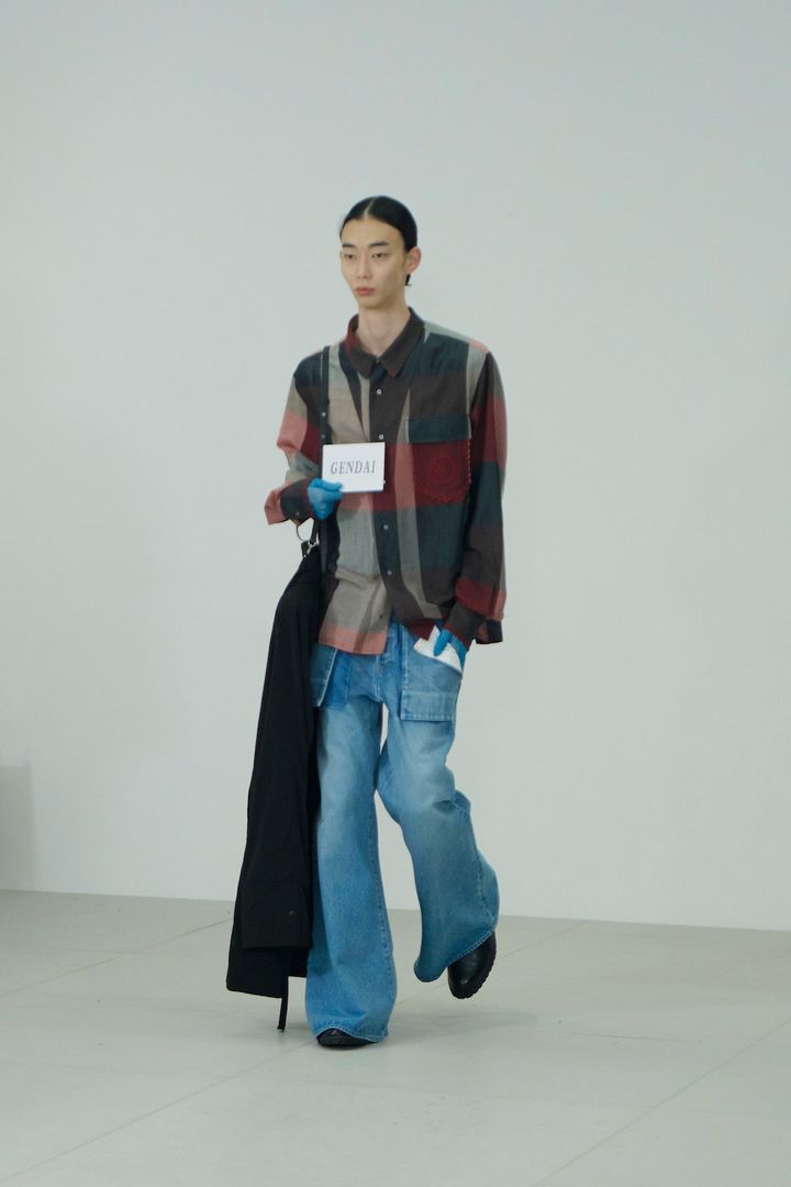 ファーストルックのホワイトのシャツドレスは、表紙に来場者それぞれの名前が書かれた約45ページのブック(とショー中に流れた各ルックを説明する音声)によれば、ブランドを周囲の人達に広めてくれるNadineのためのアイテムで、PRチケットがたくさん入るマチ付きポケットをデザインし、5ルック目のインド産テーブルクロスの刺しゅうの要素を取り入れたチェックシャツは、インド出身のSylviaの夫Amnayeに向けたもの──。というように、ミスターイットは大切な友人や身近な人々にインスピレーションを得ている。砂川は「ブランドが成長したとしても作り方は絶対変えずに、とことん人のことを考えて作り続けていきたいです」と話した。