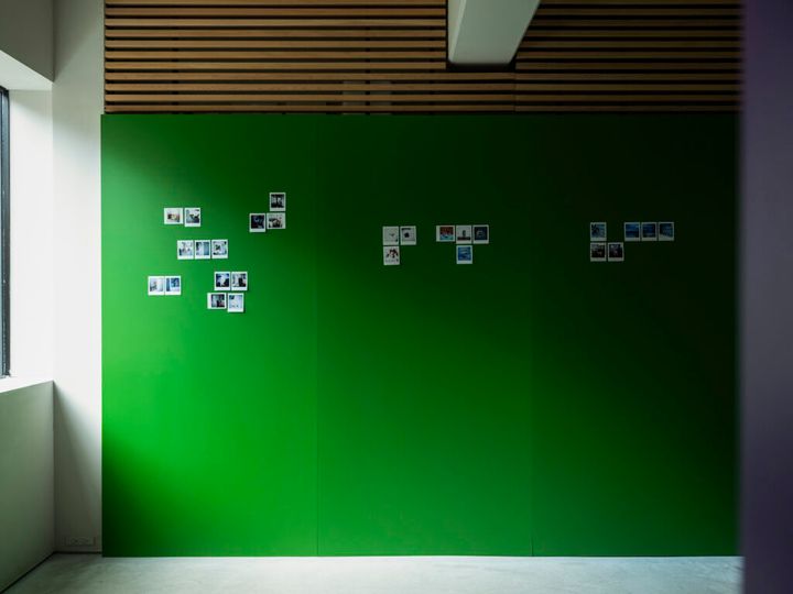 3人の写真家が捉えた写真作品は1階のギャラリーで展示。写真展ではあまり見ることのないカラフルな壁面に作品を展示する方法も新鮮で、その中でも作品が存在感を放っているのは3人の写真家と創造したビジュアルが力強いからだろう。作品も、展示手法も、印象的だ。