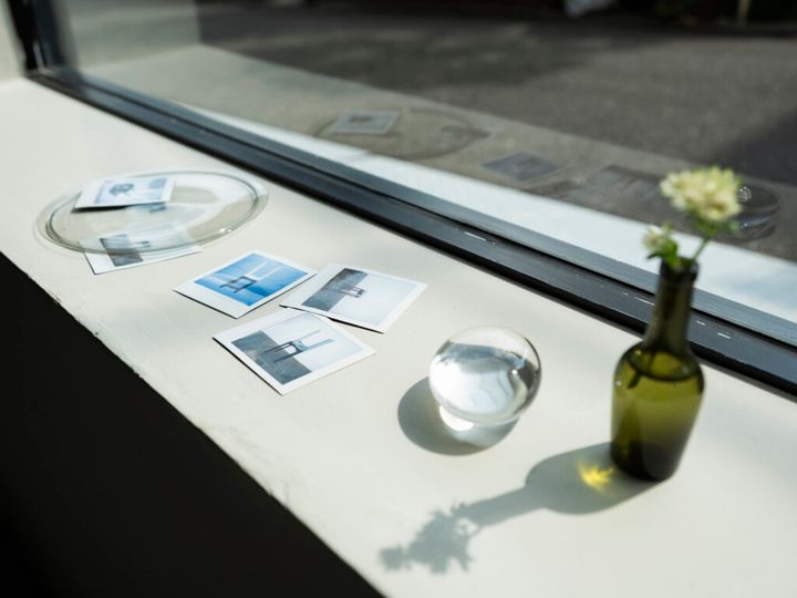 会場は、写真作品を展示する1階ギャラリーと、実際の家具をスタイリングした2、3階のショールームから構成されている。尾身さんが撮影した〈Karimoku Case〉の世界観を表現した2階、〈MAS〉と〈Karimoku New Standard〉が並ぶ3階。2、3階それぞれのフロアには、「“チェキ” instax SQUARE SQ40」が用意されており、訪れた人が自由に写真を撮ることができる。「1階で見た作品の世界観を感じてもらえたら」と作原さんがスタイリングをしたフォトスポットも用意されており、写真を見る/撮る/飾るを気軽に体感できる、貴重な機会となっている。
