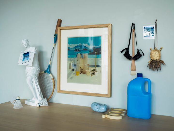 プロダクトデザイナーの熊野亘さんがデザインした〈MAS〉の風呂椅子を、“らしい”世界観で表現した横浪さんの作品。