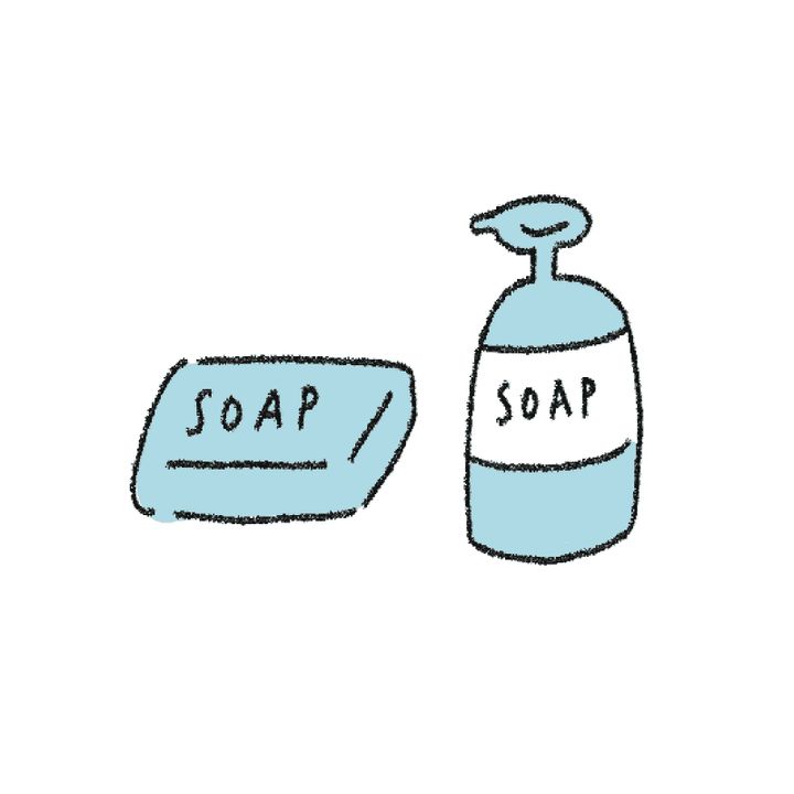 まずは髪にも体にも使える石けんや全身シャンプー。加えて万能アイテムのワセリンや全身に使えるオイルさえあれば、最低限の荷物で済みます。