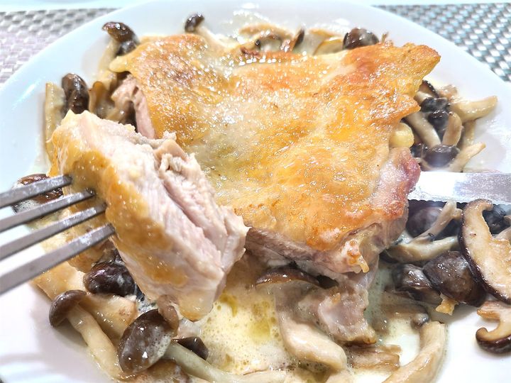 【肉を焼く技術】絶対失敗しない【鶏もも肉の焼き方】を真似して「きのこのチキンクリーム」を作ってみた!