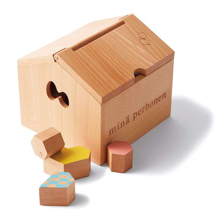 置いてあるだけでサマになる、大人も満足なインテリア玩具はギフトにもおすすめ。六角形、ドロップ型、ハート型の3種類の形の積み木が8個ずつ入っています。家の形の木箱がセットになっているので、お片付けも楽しくなりそう!