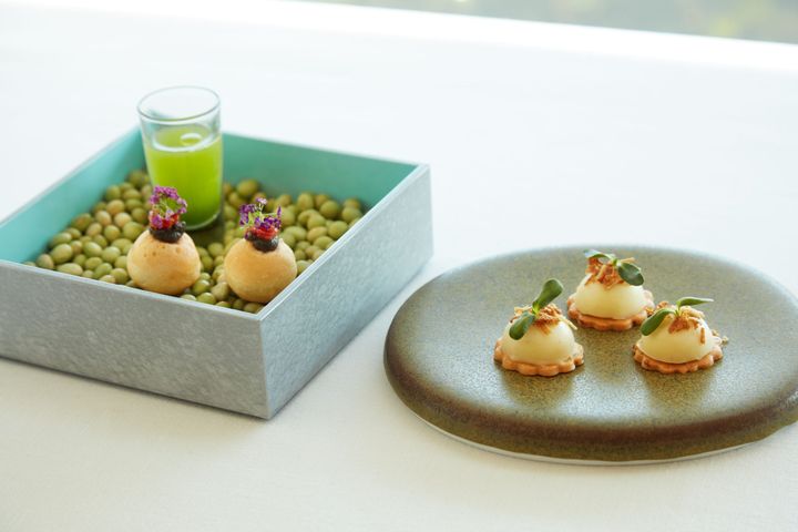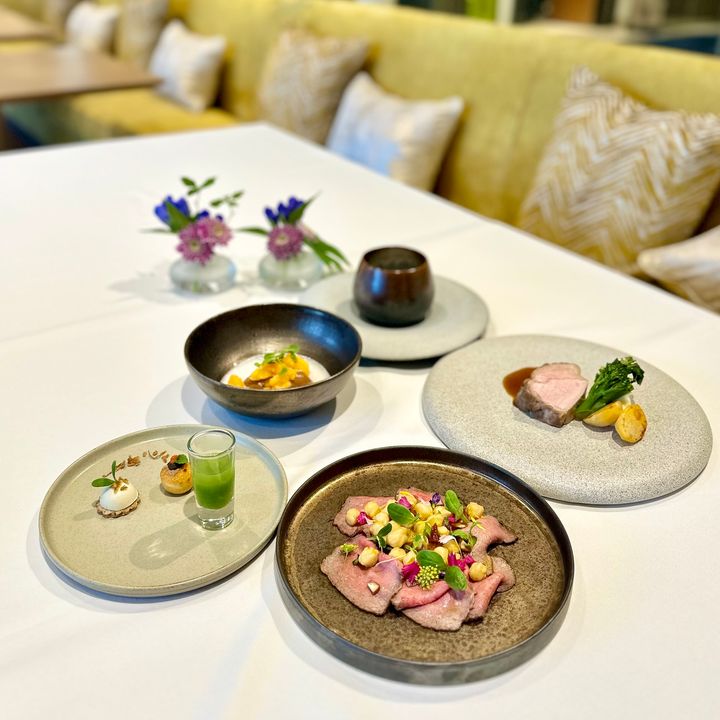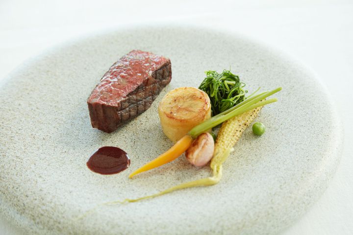 料理長を務めるのは、スイス・カンボジアにおいて21年の海外経験を積んだ、フランス農事功労章シュヴァリエ叙勲シェフ・加茂健(かも・たけし)氏。フランス名店「ラ・ピラミッド」のパトリック・アンリルーシェフの下、本場フランスの空気を感じながら新メニューを考案したそうです。正統なフランス料理でありながら、日本ならではの食材を組み合わせた四季折々の軽やかなオリジナル料理を楽しめます。
